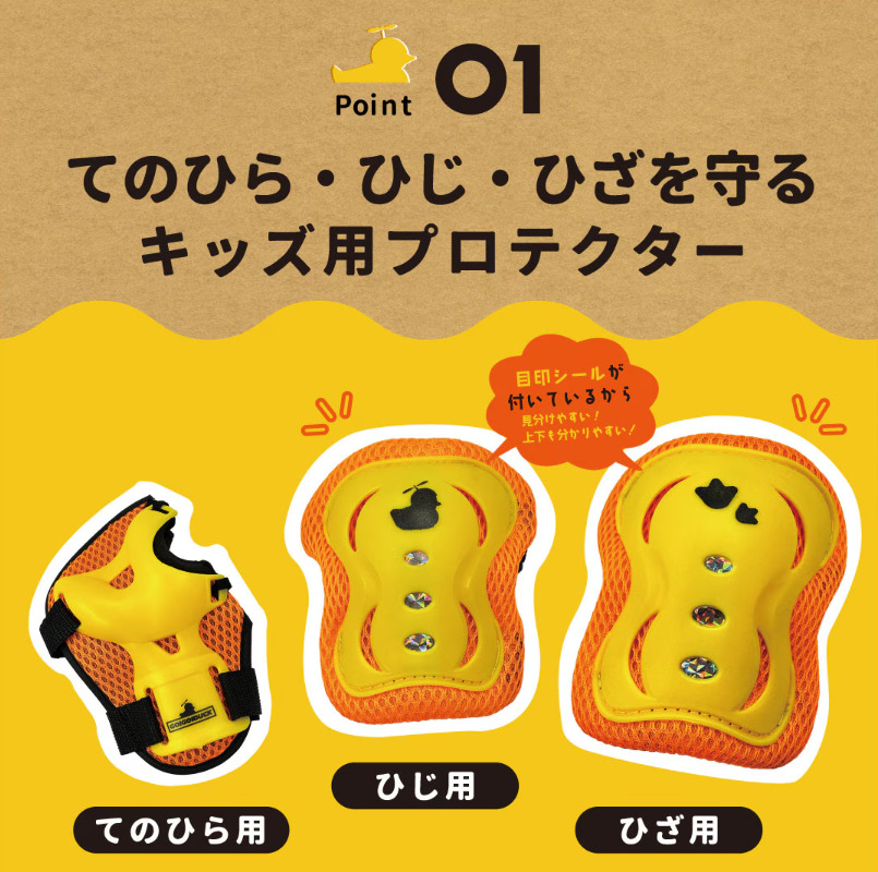 トレーニングバイクや一輪車、スケートなどの練習に!両手のひら、両ひじ、両ひざの3点をガードするキッズ用プロテクター